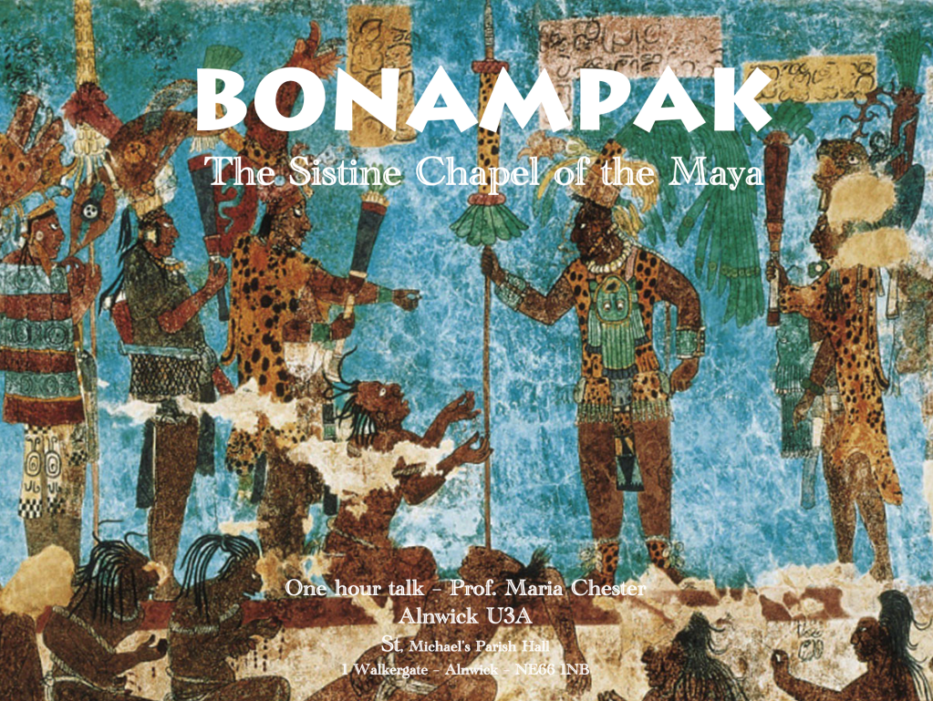 Alnwick U3A has commissioned this lecture. It will be delivered in person. Members meet in St.Michael’s Parish Hall, Alnwick. Bonampak is an unique example of Maya frescoes painted in a three room small temple in the middle of the Mexican rainforest. https://u3asites.org.uk/alnwick/home